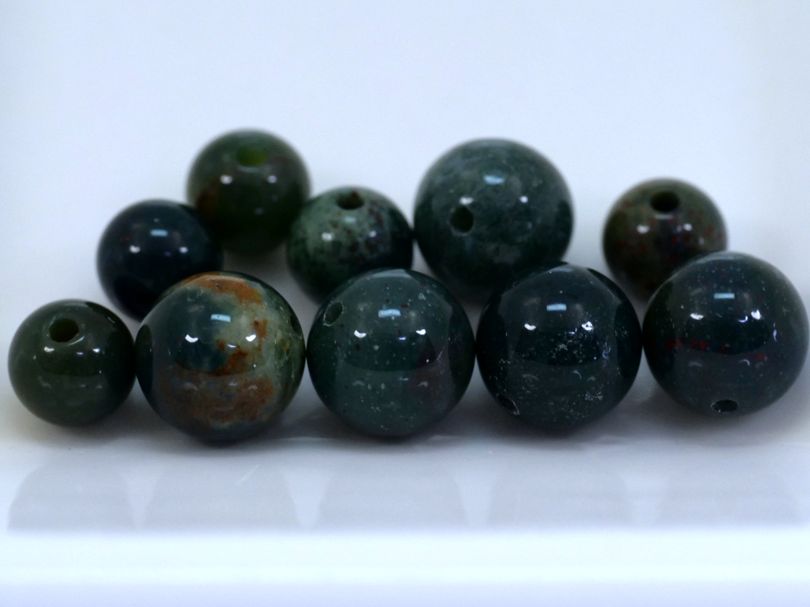 ブラッドストーンは深い緑地に赤色斑点を持つ石で、古代より守護と勇気の象徴とされてきました。欧州ではヘリオトロープとも呼ばれます。
