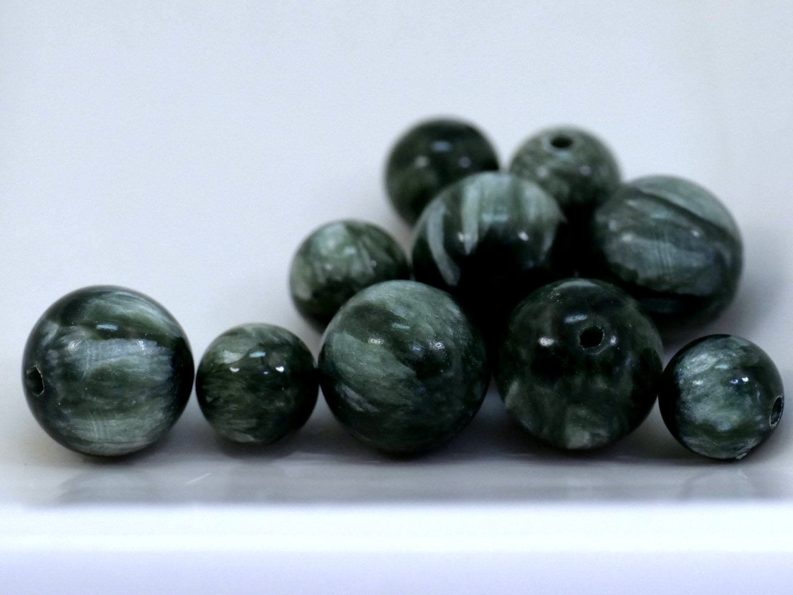 セラフィナイトはその美しい模様からペンダントやブレスレットに人気があります。心を落ち着けたいときや瞑想時のお守りとして身につけるのに適しています。